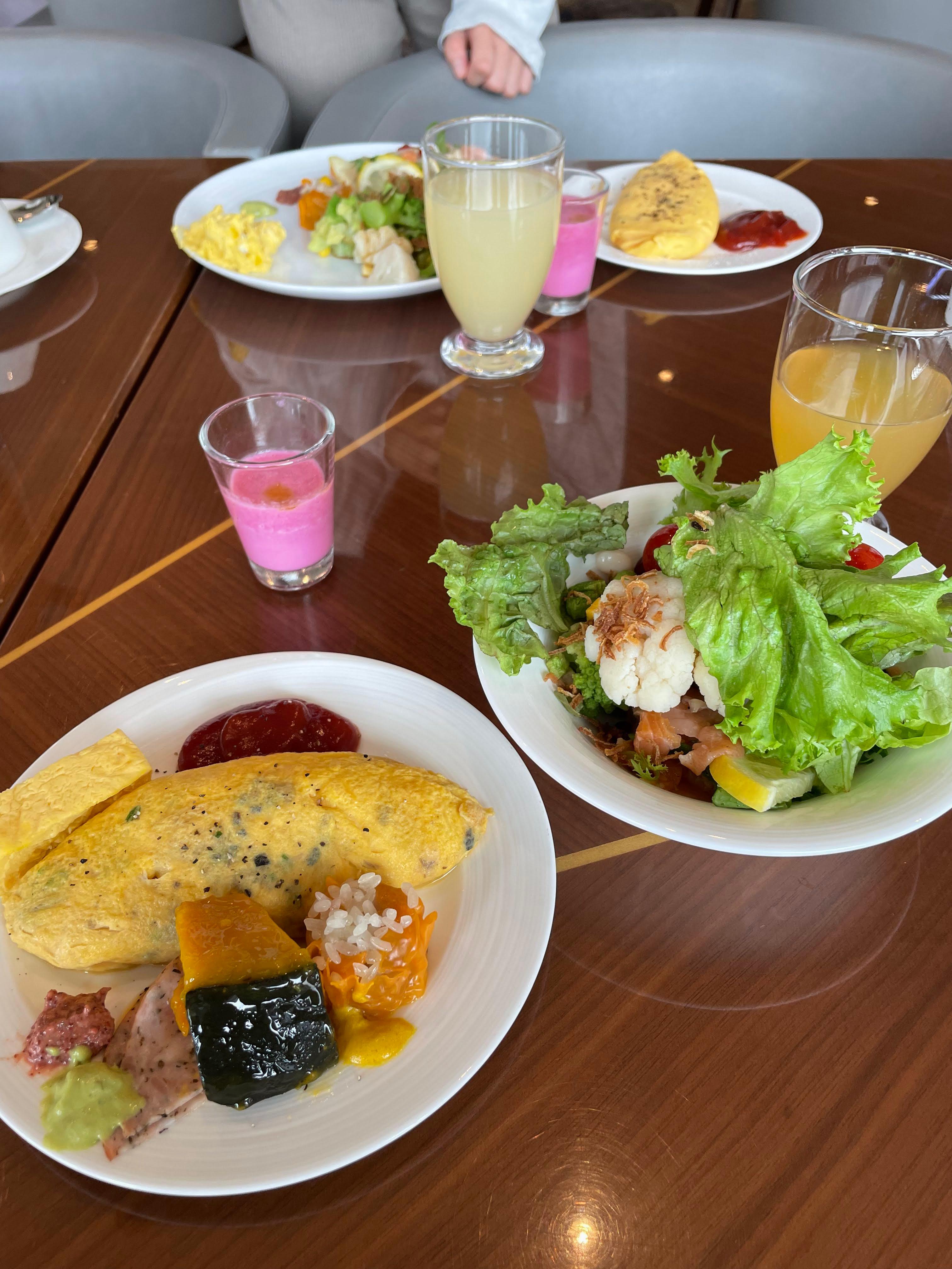 - 일본식 메뉴(사시미, 미소시루, 밥)부터 서양식 메뉴(빵, 오믈렛, 소시지)까지 다양합니다.